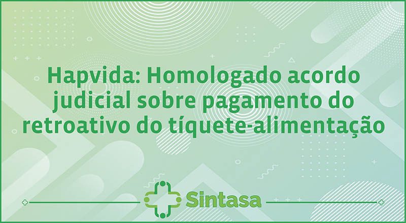 Foi homologado o acordo judicial dos empregados da empresa da Hapvida, representados pelo Sindicato dos Trabalhadores na Área da Saúde do Estado de Sergipe (Sintasa), em relação à cobrança retroativa do tíquete-alimentação que estava sendo pago abaixo do valor acordado na Convenção Coletiva do Trabalho (CCT).