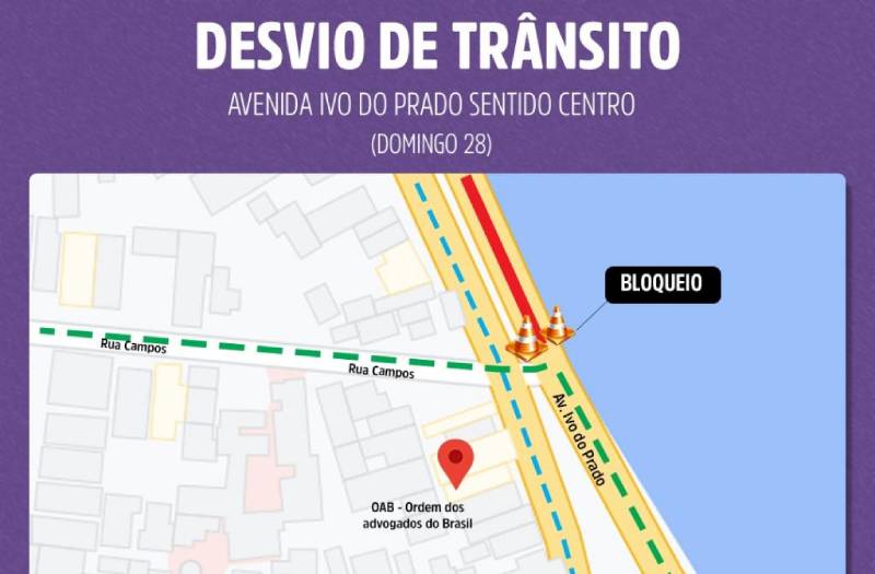 Avenida Ivo do Prado ficará parcialmente bloqueada neste domingo, dia 28