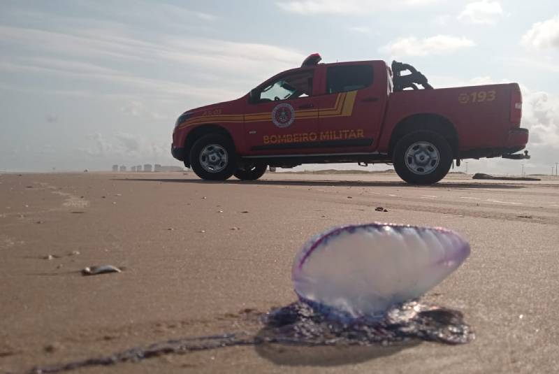 Segundo o major, a maior incidência de caravelas está relacionada ao período de reprodução da espécie, além da chegada de correntes frias no litoral. O contato com os tentáculos pode gerar sintomas leves, como vermelhidão e queimação em uma pequena área. “Nesses casos, a indicação é lavar com vinagre ou a própria água do mar para aliviar os sintomas. Não esfregue o local ou coloque águia doce, que podem piorar esses sintomas”, aponta.