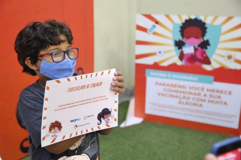 Para a vacinação de crianças de 5 a 11 anos estão sendo utilizados os imunizantes CoronaVac e Pfizer. As doses da CoronaVac estão sendo aplicadas em todas as UBSs da capital, de segunda a sexta-feira, das 8h às 16h; no drive-thru no Parque da Sementeira, de segunda a sexta, das 8h às 13h, e no ponto de vacinação dos Shoppings Jardins, Riomar e Aracaju Parque de segunda a sexta, das 8h às 17h.
