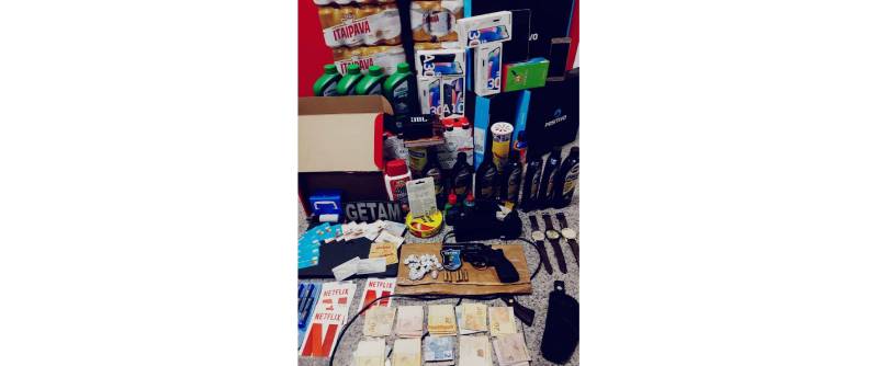 Na ação policial, foram recuperados produtos como 48 caixas de cerveja, dois pneus, produtos de higiene, notebook, máquina de clonar cartões, máquina de cartão de crédito, quatro celulares; além de notas fiscais, diversos cartões e a quantia de R$ 1823.