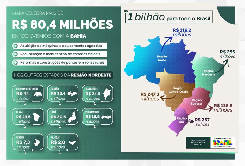 Em Sergipe, esses valores colaboraram para financiar a aquisição de máquinas e equipamentos agrícolas e para a recuperação e a manutenção de estradas vicinais. As cifras repassadas pelo Governo Federal também subsidiaram a realização de eventos e exposições do setor, além de reformas e construção de pontes, entre diversas outras.