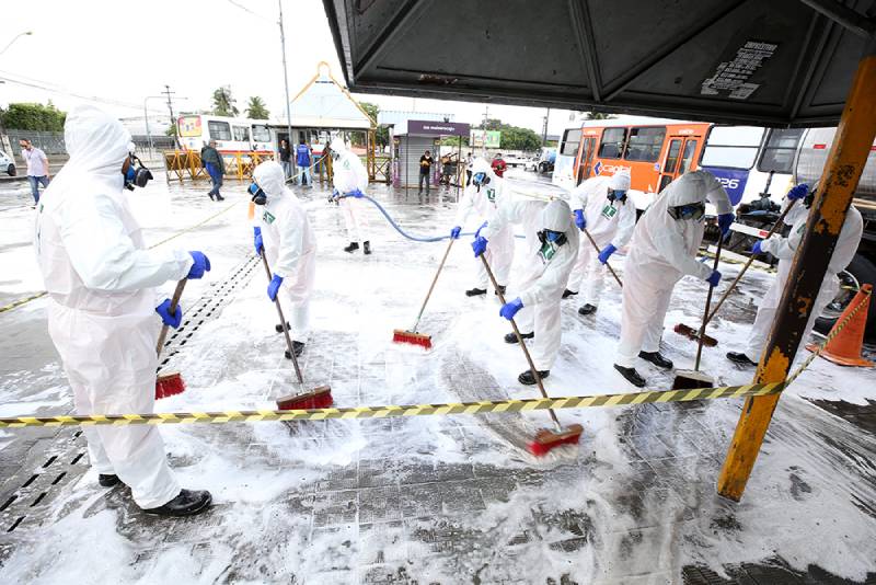 A atividade começou pelos terminais de integração do transporte público DIA, Leonel Brizola e Mercado, além das áreas próximas ao Mercado Central. A ação prevê também a limpeza e esterilização de pontos de táxi, áreas de hospitais e de unidades básicas de saúde que atendem exclusivamente pacientes com síndromes gripais.