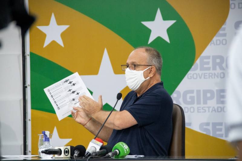 O governador Belivaldo Chagas divulgou, nesta quinta-feira (11), novas restrições para o comércio e atividades educacionais e a manutenção das medidas restritivas anunciadas na última quinta para combater a disseminação do coronavírus. O anúncio foi feito durante coletiva de imprensa posterior à reunião com o Comitê Técnico-Científico e de Atividades Especiais (Ctcae).