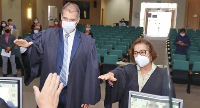 Roberto Porto convidou os empossandos a prestarem, de forma conjunta, o juramento nos seguintes termos. “Prometo desempenhar, bem e fielmente, os deveres do meu cargo, cumprindo e fazendo cumprir a Constituição e as Leis”. Ato contínuo, a Desa. Elvira e o juiz Marcelo assinaram o termo de posse na presença dos demais integrantes do colegiado, servidores, autoridades, parentes e amigos que prestigiavam a solenidade.