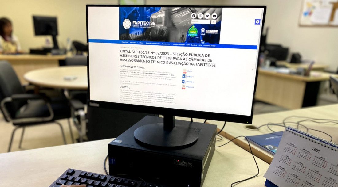 A Fundação de Apoio à Pesquisa e à Inovação Tecnológica do Estado de Sergipe (Fapitec/SE) lança nesta quinta-feira, 20, o Edital nº 07/2023 para Seleção Pública de pesquisadores e profissionais com doutorado nas áreas de Ciência, Tecnologia e Inovação para compor as Câmaras de Assessoramento Técnico (CATs) e Avaliação da Fapitec/SE. As inscrições ficam abertas até 22 de setembro.