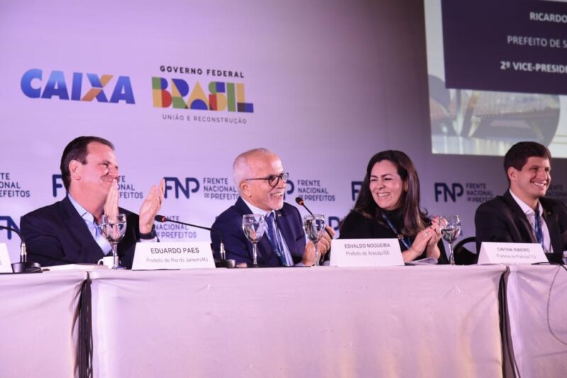 O prefeito Edvaldo Nogueira, foi reeleito, por aclamação, presidente da Frente Nacional de Prefeitos (FNP). A eleição ocorreu nesta segunda-feira, 13, durante a 84ª Reunião Geral da entidade municipalista, em Brasília. Também integram a Mesa Diretora para o biênio 2023-2025 o prefeito do Rio de Janeiro/RJ, Eduardo Paes (1º vice-presidente), o prefeito de São Paulo/SP, Ricardo Nunes (2º vice-presidente), a prefeita de Palmas/TO, Cinthia Ribeiro, e outros 95 prefeitos.