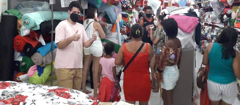 Uma loja de tecidos foi autuada durante fiscalização do Procon/SE nessa terça-feira, 16. Durante a visita, todo o estabelecimento comercial foi verificado e ficou constatada a presença de clientes, aglomerados, escondidos em um dos depósitos do local.