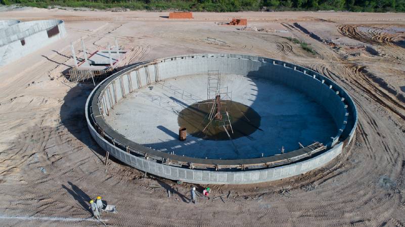 De acordo com o engenheiro civil e fiscal da obra, Edson Barreto, o ritmo dos trabalhos atende às expectativas planejadas. “A execução das edificações da estação mantém-se dentro do cronograma. Atualmente 50 profissionais atuam na construção do muro, implantação de rede elétrica e finalização do decantador. Nas próximas semanas aumentaremos o efetivo e iniciaremos a implantação da tubulação enterrada e, posteriormente faremos a urbanização, bem como a regularização manual do talude”, explica.
