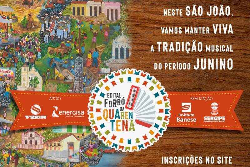 As inscrições para participar de mais uma iniciativa de fomento à produção cultural sergipana seguem abertas até esta quinta-feira, 18. O edital “Forró da Quarentena”, lançado pelo Grupo Banese, através do Instituto Banese, e Governo de Sergipe, é dedicado a artistas do ciclo junino e tem o objetivo de manter viva a tradição em Sergipe mesmo nesse período de isolamento social.