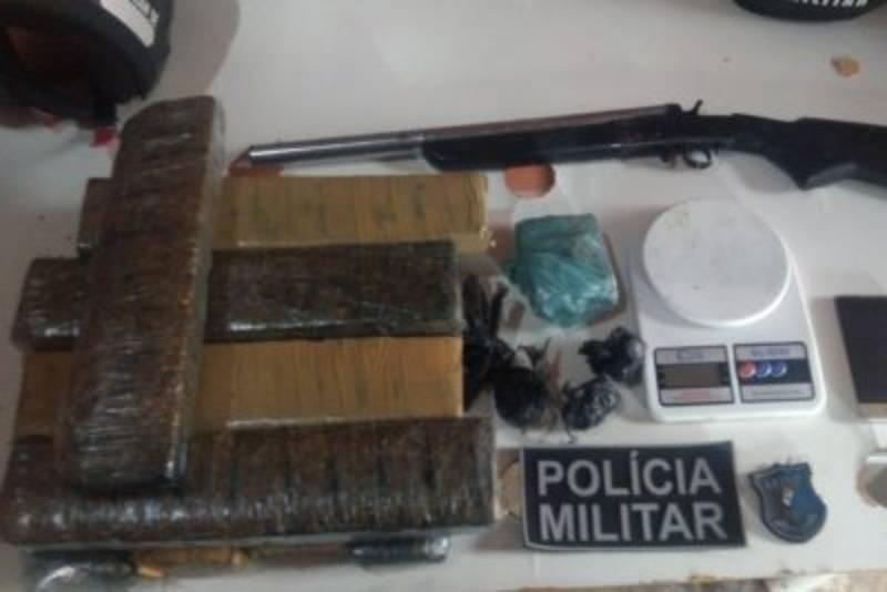 Diante das suspeitas, foram realizadas buscas na residência do suspeito, que resultaram na apreensão de mais de nove quilos de maconha, além de uma espingarda de fabricação caseira calibre 12 e uma balança de precisão.