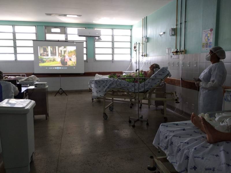 “Estamos repensando desde o início da pandemia sobre o paciente Covid-19 porque ele fica sem acompanhante e o fato de ficar sem, tanto para eles como para os profissionais, é novidade. A equipe está repensando como minimizar os danos emocionais, já que a Covid é uma doença que tem um estigma. Antes de entrar na unidade eles têm acesso ao quantitativo de pessoas infectadas, de óbitos, sempre conhece uma pessoa que perdeu alguém na família, então eles já entram aqui assustados por estar com a doença. Tentamos minimizar a falta dos familiares através da implantação das Visitas Virtuais e, agora, estamos com um novo projeto, o Cine Jessé”, disse.