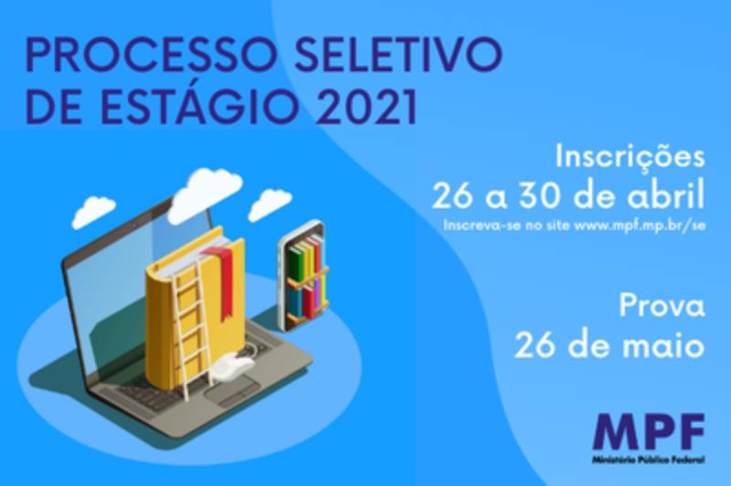 O Ministério Público Federal em Sergipe (MPF/SE) abriu hoje, 26, as inscrições para o Processo Seletivo de Estágio 2021. O estudante interessado em participar da seleção deverá preencher a ficha de inscrição disponibilizada no site do MPF, em http://www.mpf.mp.br/se/estagie-conosco/concursos, no período das 8h do dia 26/04 até as 23h do dia 30/04. Em seguida, deverá encaminhar os documentos solicitados no edital para o e-mail [email protected] até as 23h do dia 03/05.