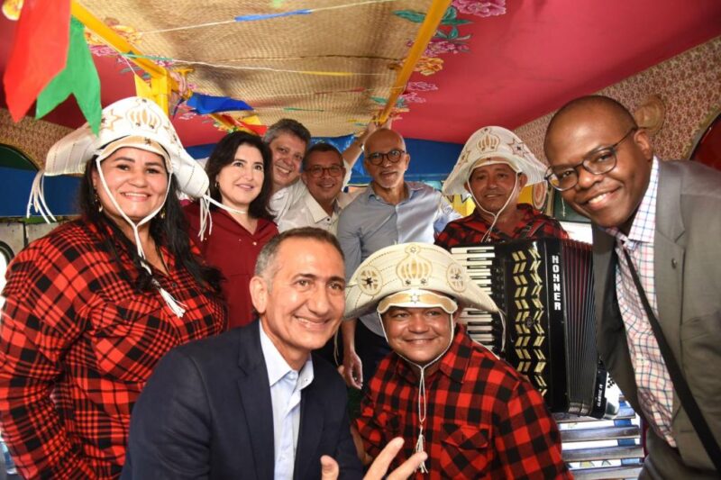 Durante o trajeto, o prefeito Edvaldo Nogueira exibiu seu talento na zabumba, o ministro Sílvio Almeida tocou triângulo e a ministra Simone Tebet adornou a cabeça com um vistoso chapéu de couro, enquanto os demais participantes do passeio cantavam e dançavam.