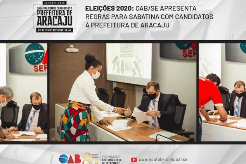 Nos dias 03, 04 e 05 de novembro, a Ordem dos Advogados do Brasil, em Sergipe, promoverá uma sabatina com os candidatos à Prefeitura de Aracaju. Nesta terça-feira, 27, a OAB realizou uma reunião com os concorrentes ou seus representantes para esclarecer as regras do evento.
