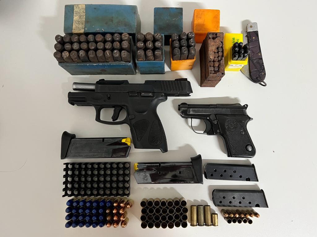 Na ação policial, foram apreendidas três armas de fogo, sendo uma pistola calibre 9mm, uma pistola calibre .635 e um revólver calibre .38. Além dos armamentos, foram apreendidos diversas munições de mesmo calibre intactas e deflagradas, materiais comumente utilizados para marcação de chassi de veículos automotores, aparelhos celulares e outros objetos que eram utilizados pelo grupo criminoso.