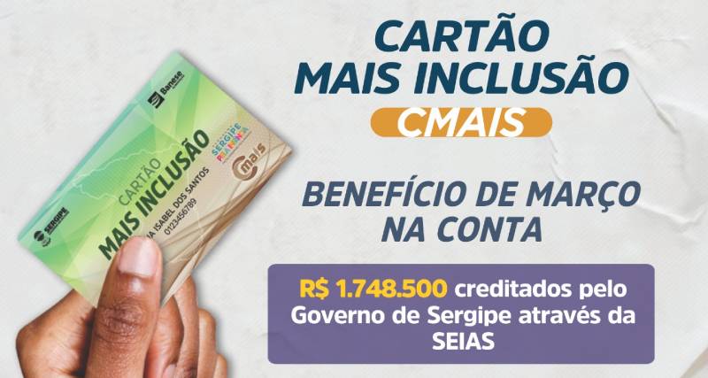 O Cartão Mais Inclusão é um Programa de Transferência de Renda criado pelo Governo de Sergipe para mitigar os efeitos da pandemia na segurança alimentar e nutricional das famílias em extrema pobreza. Desde abril de 2020, os beneficiários recebem o valor de R$ 100, equivalente ao preço médio de uma cesta básica, para aquisição exclusiva de alimentos. Desde a criação do CMAIS, o Governo de Sergipe já investiu mais de R$ 25 milhões, no pagamento de quase 250 mil benefícios.