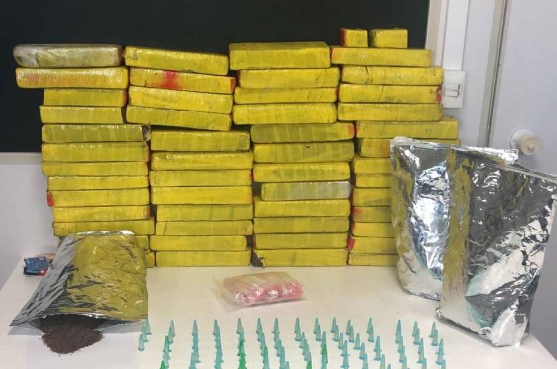 Durante as buscas feitas pelas equipes policiais e pela GMA, foram encontradas duas malas com entorpecentes no bagageiro do veículo do transporte coletivo interestadual. As malas pertenciam à Moaria e continham 30 kg de maconha prensada, além de pinos preenchidos com cocaína e um outro tipo de maconha, conhecido como k2 ou “spice”.