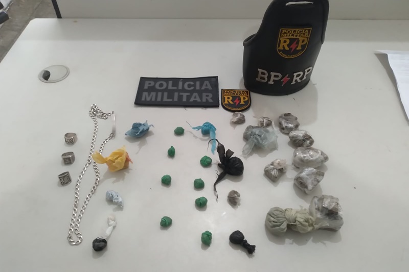 Durante o procedimento, ele foi flagrado com oito buchinhas de maconha e três invólucros com crack, dentro do bolso. Ainda na ação, os agentes encontraram o saco plástico dispensado pelo suspeito, sendo localizados mais quatro buchinhas de maconha, oito invólucros com maconha e três de crack.