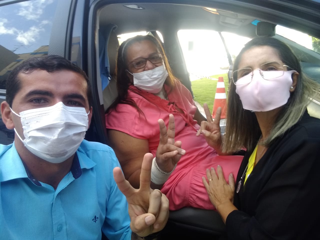 A Vice-Prefeita e atual Pré-Candidata a Prefeita de Monte Alegre de Sergipe. Valdirene Aragão, saiu do hospital, onde se encontrava internada se tratando de Covid-19. Aí ela participou dessa carreta (veja vídeo e foto) com fogos, músicas, bandeiras, adesivos em carros, máscaras personalizadas e buzinaço.