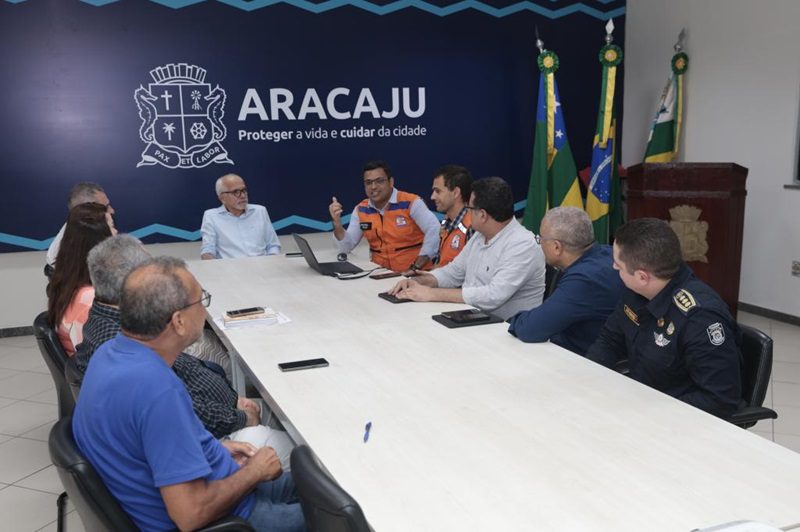 O prefeito Edvaldo Nogueira reuniu, nesta quinta-feira, 5, o Comitê de Gerenciamento de Crise da Prefeitura de Aracaju para tratar sobre as chuvas registradas na manhã de hoje, na capital, e das ações preventivas previstas para serem realizadas nos próximos dias, a fim de evitar prejuízos para a população. Na ocasião, foram abordados os locais identificados como pontos sensíveis ou áreas de risco quando suscetíveis a um alto índice pluviométrico, como o registrado nesta quinta. De acordo com a Defesa Civil de Aracaju, a cidade registrou um acumulado de chuva de 70 mm num intervalo de apenas seis horas.
