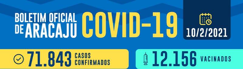 A Secretaria Municipal da Saúde de Aracaju informa que até as 18h desta quarta-feira, 10, foram registrados 346 novos casos de covid-19 na capital e um óbito. Sendo do sexo feminino com 12 anos, neoplasia, que veio a óbito dia 25/12/2020.