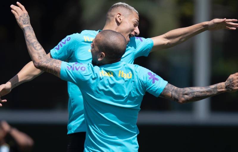 Tite dividiu o grupo em duas equipes, sendo a sem colete com Alisson, Dani Alves, Marquinhos, Eder Militão e Alex Telles; Fabinho, Bruno Guimarães e Lucas Paquetá; Antony, Richarlison e Philippe Coutinho. Na equipe com colete amarelo ficou Everson, Danilo, Thiago Silva, Felipe e Guilherme Arana; Casemiro, Fred e Arthur; Rodrygo, Erick Marcus (do sub-20 do Vasco) e Gabriel Martinelli.