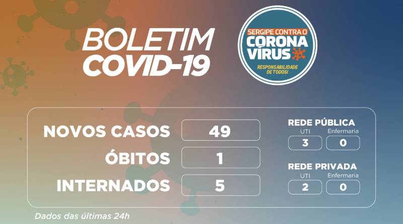 A Secretaria de Estado da Saúde, através do boletim epidemiológico, informa que nesta sexta-feira (10), foram registrados 49 casos novos de Covid-19 e um óbito. No total, 327.687 pessoas testaram positivo para a doença e 6.350 morreram. O óbito confirmado foi um homem, 66 anos, de Lagarto, com diabetes, doença renal crônica e doença cardiovascular crônica.