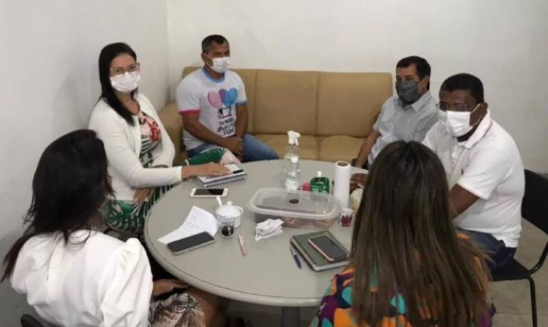 Participaram da reunião também o gerente do Sintasa, Janderson Alves; a advogada do sindicato, Karoline Simões; e funcionários do município.