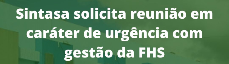 O Sindicato dos Trabalhadores na Área da Saúde do Estado de Sergipe (Sintasa) encaminhou, nesta quinta-feira, 17, um ofício para o diretor geral da Fundação Hospitalar de Saúde, Kleber Lima, solicitando uma reunião em caráter de urgência para debater sobre questões relacionadas a Revisão do Plano de Emprego e Remuneração (PER), Gozo de Férias e Cartão do Tíquete-Alimentação.